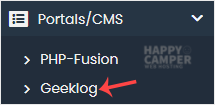 4. On the left side, locate the Portal/CMS category. Click on it and then on the Geeklog link that appears.